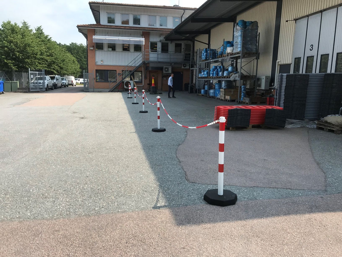- Pfosten- und Kettenbarrieresystem ist ideal für temporäre Absperrungen, flexible Abgrenzungen, Warteschlangenmanagement oder um sichere Arbeitszonen oder Bereiche zu schaffen