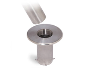 Wenn eine gelegentliche Entfernung erforderlich sein könnte, wird eine Bodenhülse eingesetzt, und der Pfosten ist mit einem Einsatz ausgestattet, der in die Hülse gleitet. Eine Abdeckung schließt bündig mit der Oberfläche ab, um eine sichere Schließung zu gewährleisten, wenn der Pfosten entfernt wird.