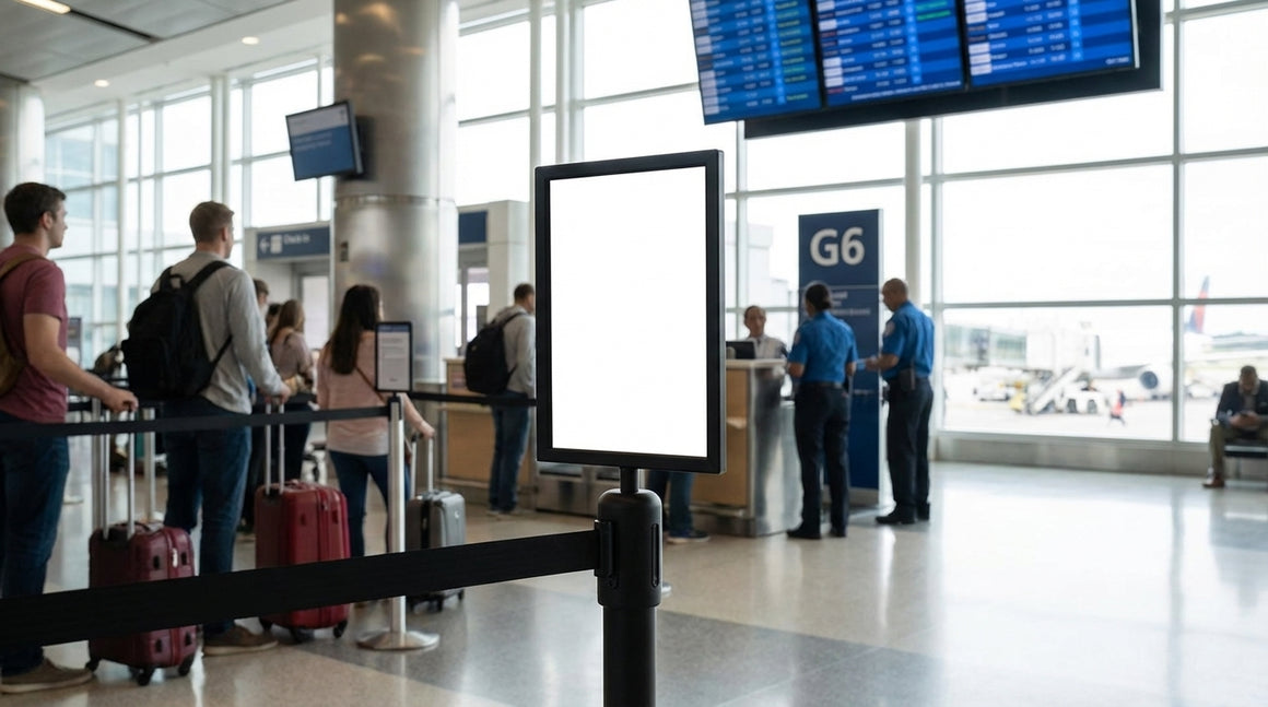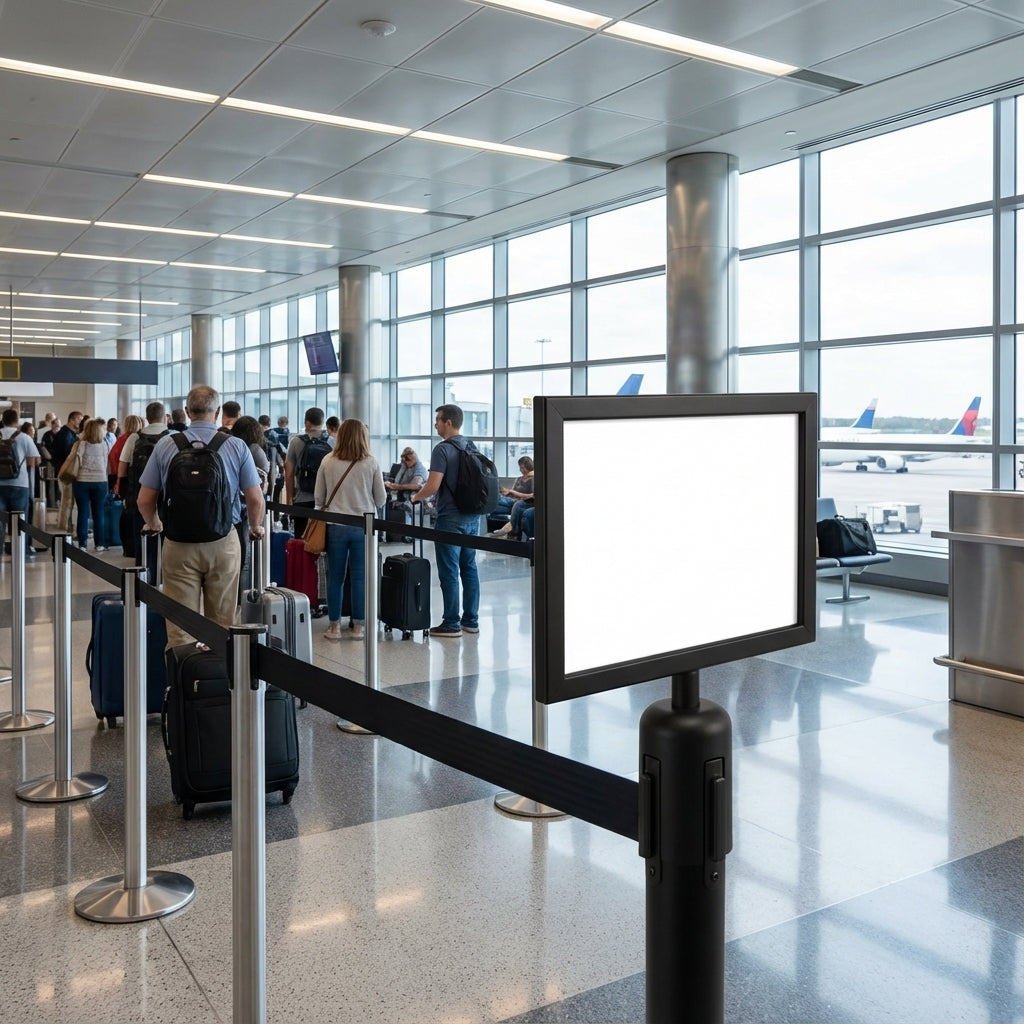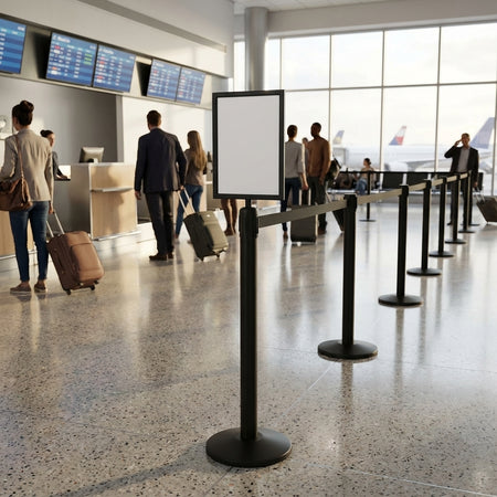 Rahmen für einziehbare Gurtbarrieren sind mit einem Pfostenoberteil-Adapter ausgestattet, der über die Oberseite des Pfostens geschoben wird, um einen festen Sitz zu gewährleisten.