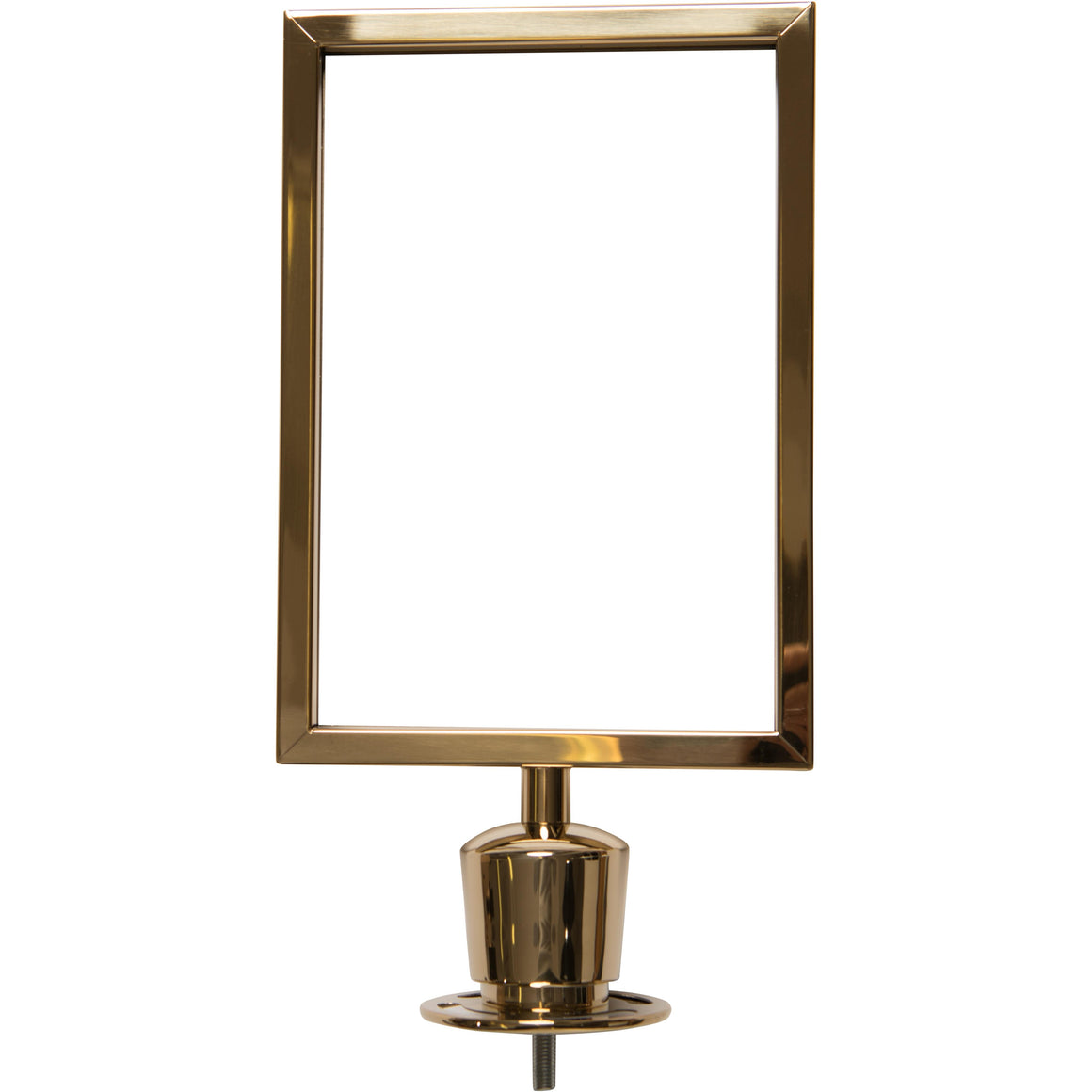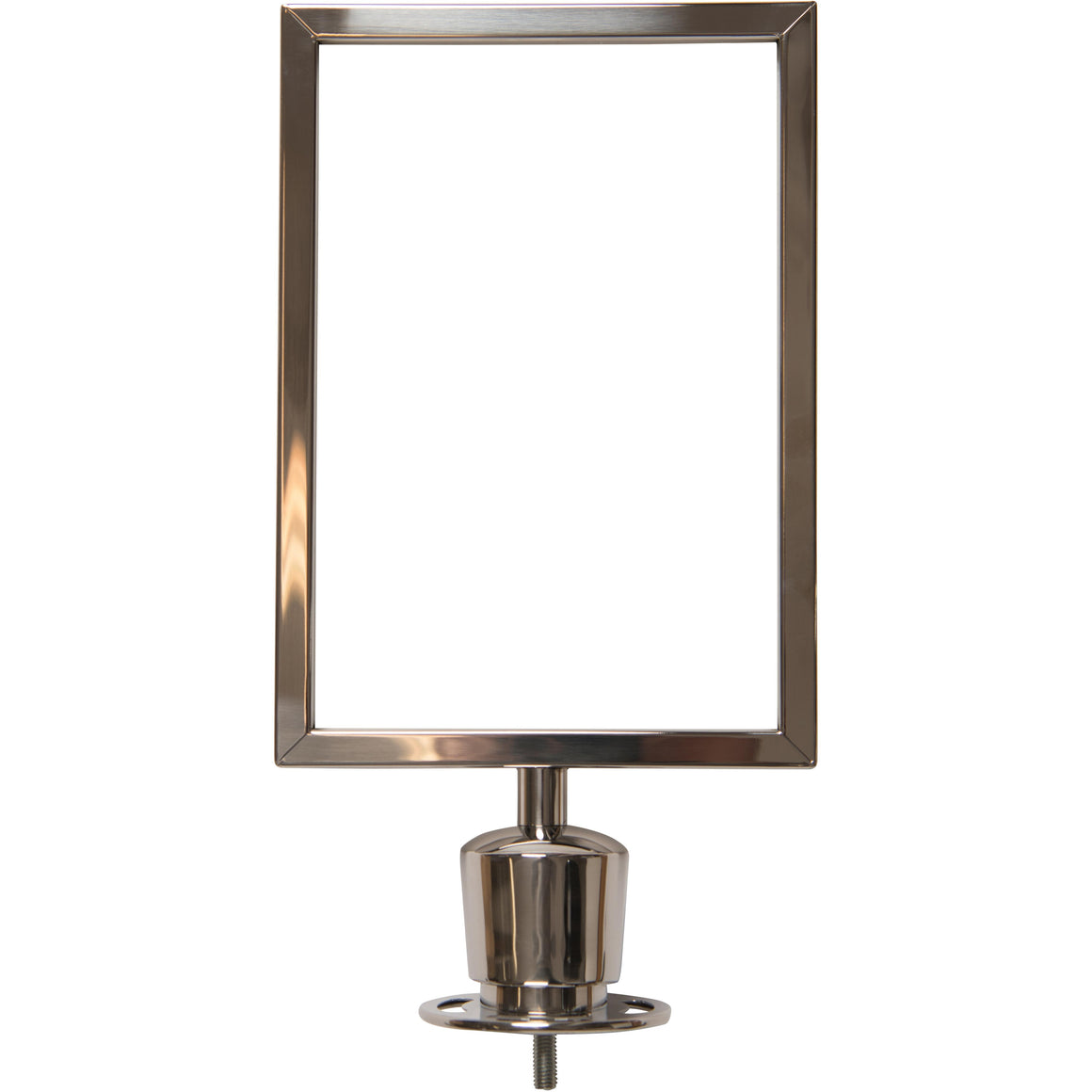 Eleganter A4-Schildhalter, der auf alle Flexibarrier-Seilbarrieren passt. Erhältlich in poliertem Chrom und Messing.