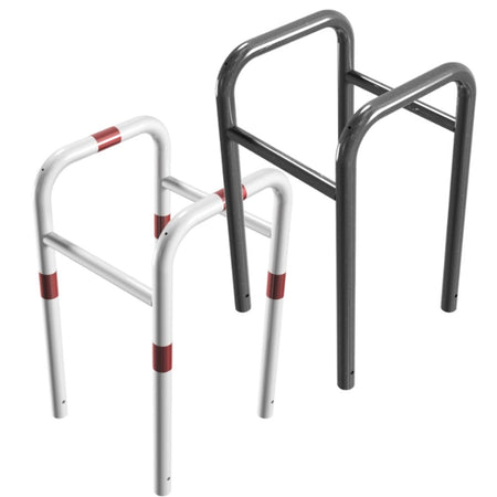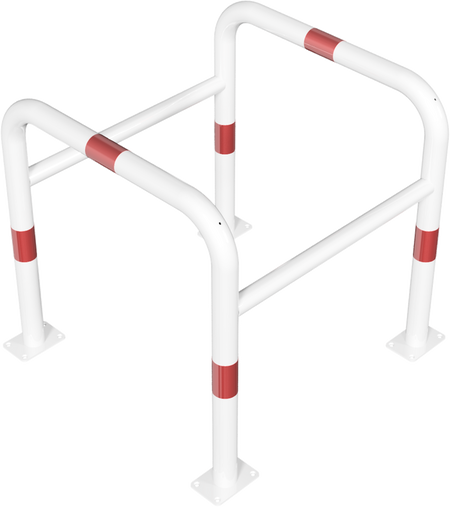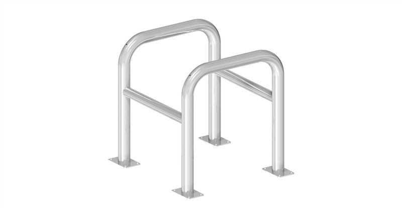 Anfahrschutzbügel für Bäume und Pfosten, Stahlrohrkonstruktion mit 2 Bügeln Ø 60 mm mit angeschweißten Querstreben Ø 48 mm zur Verschachtelung.