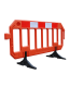 Ein Barrierenzaun aus Kunststoff mit einem schwenkbaren Fuß, der wenig Platz einnimmt, wenn er nicht in Gebrauch ist. Sie haken einfach weitere Zäune nebeneinander ein, um die gewünschte Größe der Barriere zu erstellen. Eine reflektierende Folie des Typs RA1 ist an jedem Zaun angebracht, die ihn im Dunkeln sichtbar macht.