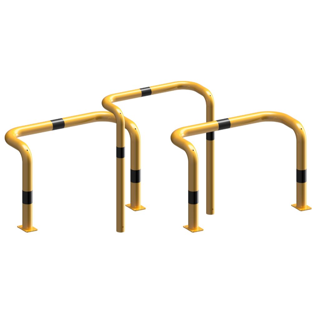Doppelter Anfahrschutzbügel mit Stahlrohr Ø 76 mm bietet effektiven Schutz für Innen- und Außenbereiche, Lager und Produktionshallen. Er ist auch die ideale Option, um Arbeitsbereiche und Verkehrswege zu sichern sowie Maschinen, Säulen und Regale zu schützen. Der Anfahrschutzbügel kann sowohl einbetoniert als auch mit Dübeln befestigt werden, was die Handhabung erleichtert. Zudem ist er in verschiedenen Abmessungen erhältlich, sodass Sie je nach Bedarf wählen können.