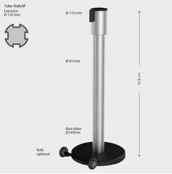 Der Beltrac Storetrac XXL ist eine sehr solide mobile Barriere, die mit einem 10 Meter langen einziehbaren Gurt ausgestattet ist. Sehr geeignet für die Industrie und sowohl für den Innen- als auch für den Außenbereich. Die Barriere besteht aus Aluminium und der 10 Meter lange einziehbare Gurt enthält ein Fliehkraftbremssystem, das verhindert, dass der Gurt bei plötzlichem Lösen mit hoher Geschwindigkeit in sein Gehäuse zurückrollt. Es ist sogar möglich, einen zusätzlichen einziehbaren Gurt an den bestehenden 10 Meter Gurt zu montieren. Bitte kontaktieren Sie uns für weitere Informationen. Neben dem einziehbaren Gurt ist der Beltrac Storetrac Mono XXL auch mit einer Aufnahme ausgestattet, sodass Sie den Gurt einer anderen Beltrac-Barriere daran befestigen können.