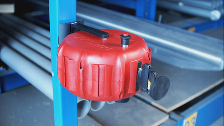 Mit einem 25 Meter ausziehbaren Gurt ist die Jettrac-Wandeinheit ideal für Lagerhäuser, Industrieanlagen, Flughäfen, Ladebuchten und große öffentliche oder kommerzielle Räume, in denen eine erweiterte Abdeckung ohne bodenmontierte Pfosten erforderlich ist.