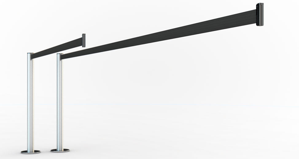 Beltrac Classic mit 3,7 m einziehbarem Gurt. Auch Beltrac Extend genannt. Die Barriere ist mobil und kann mit dem einzigartigen Beltrac-System problemlos mit mehreren verschiedenen Barrieren verbunden werden.