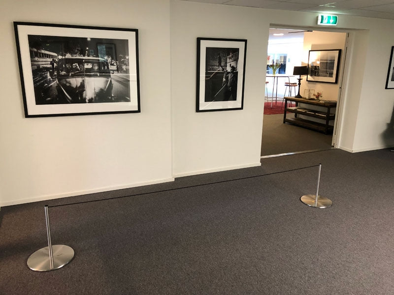 Die Flexibarrier Museum Barrier, kombiniert mit der elastischen Schnur, ist eine ideale Lösung zur Schaffung von Barrieren in Museen und Galerien. Diese Konfiguration markiert effektiv eingeschränkte Bereiche und schützt wertvolle Kunstwerke.