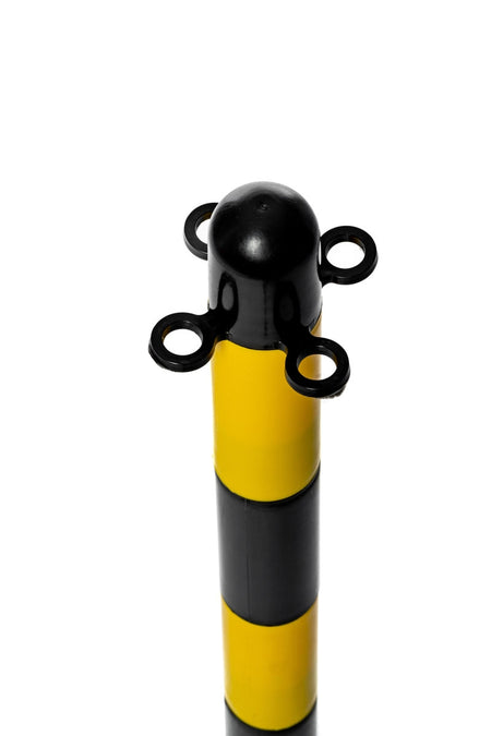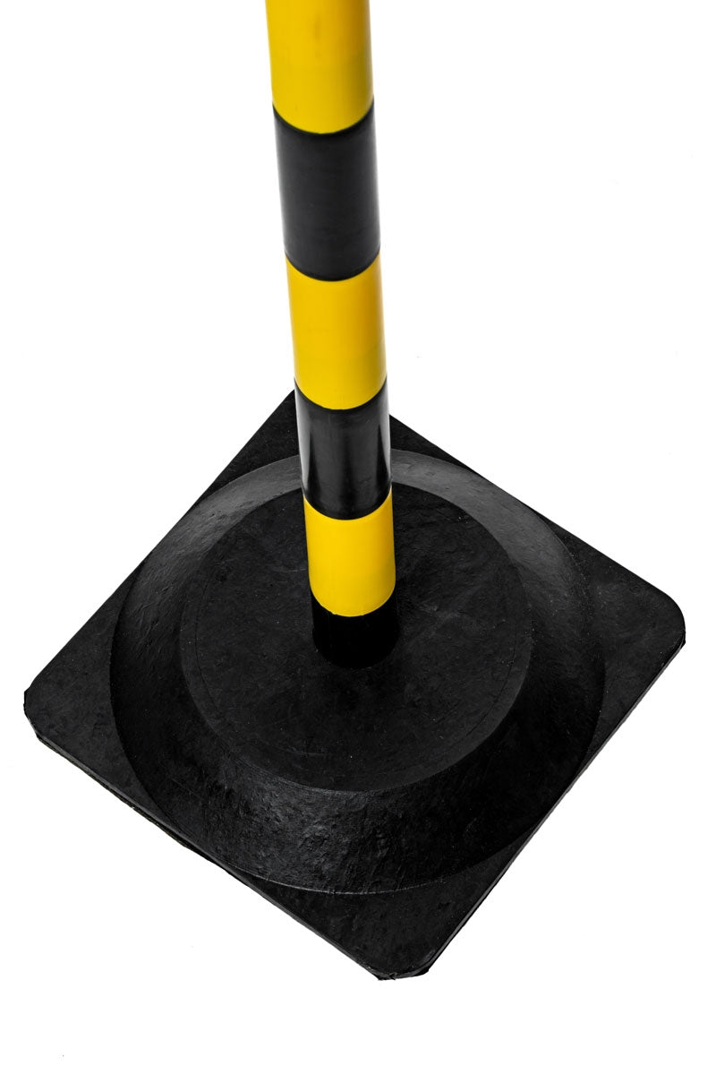 • Der Gummifuß-Kunststoffpfosten ist in zweifarbigen Streifendesigns erhältlich: weiß & rot oder gelb & schwarz