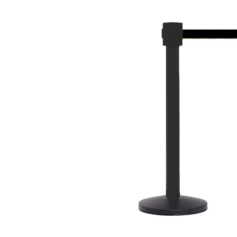 Der Flexibarrier SafetyPlus 10m ist eine Gurtabsperrung mit einem extrem langen, 10,6 Meter (!) einziehbaren Gurt. Der integrierte einziehbare Gurtmechanismus enthält eine Feder, die dafür sorgt, dass der Gurt immer unter Spannung steht, selbst wenn der Gurt nicht vollständig ausgerollt ist. Der SafetyPlus ist mit einem Knopf am Mechanismus ausgestattet, mit dem der Gurt verriegelt werden kann.