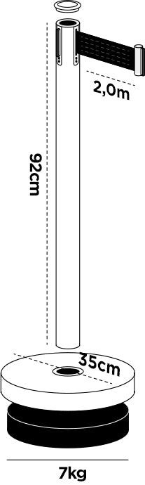 Der Flexibarrier -Eco 200- verfügt über einen Pfosten aus Stahl und einen mit Beton gefüllten Sockel, der mit einem Bodenschutz ausgestattet ist, der den gesamten Umfang abdeckt. Der einziehbare Gurt ist 2 m lang. Die Gurte haben ein universelles Gurtende, was bedeutet, dass sie mit allen größeren Pfostenmarken verbunden werden können. Suchen Sie nach personalisierten Gurtaufdrucken oder einer personalisierten Farbgestaltung des Pfostens? Kontaktieren Sie uns gerne.