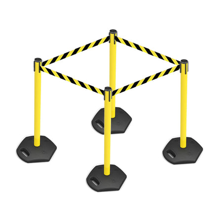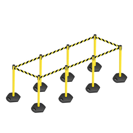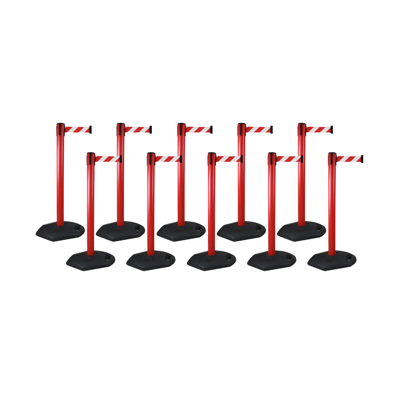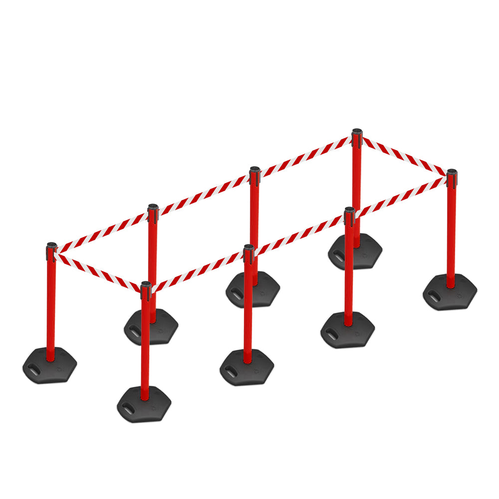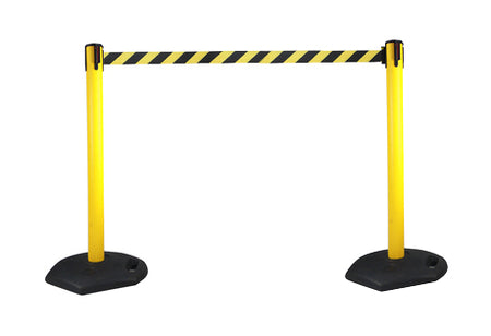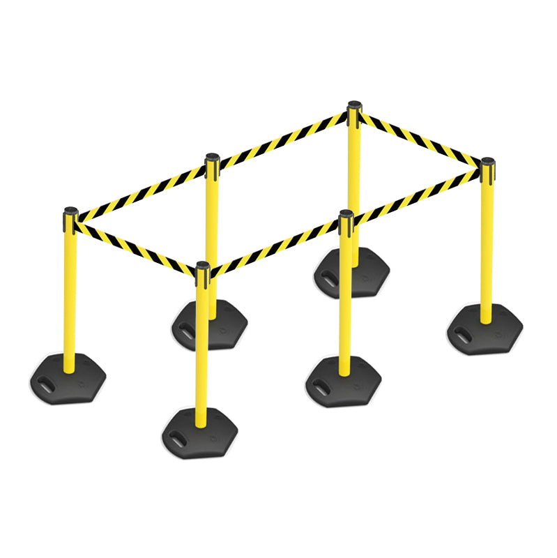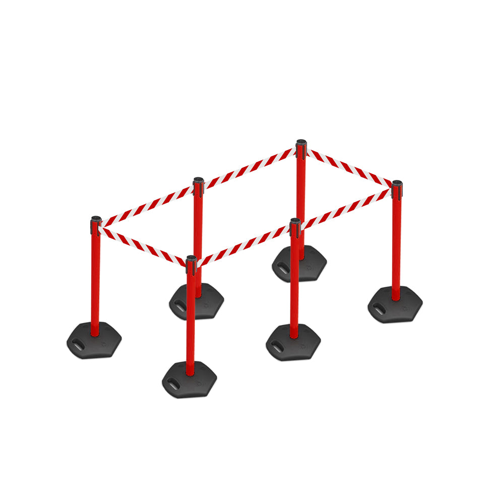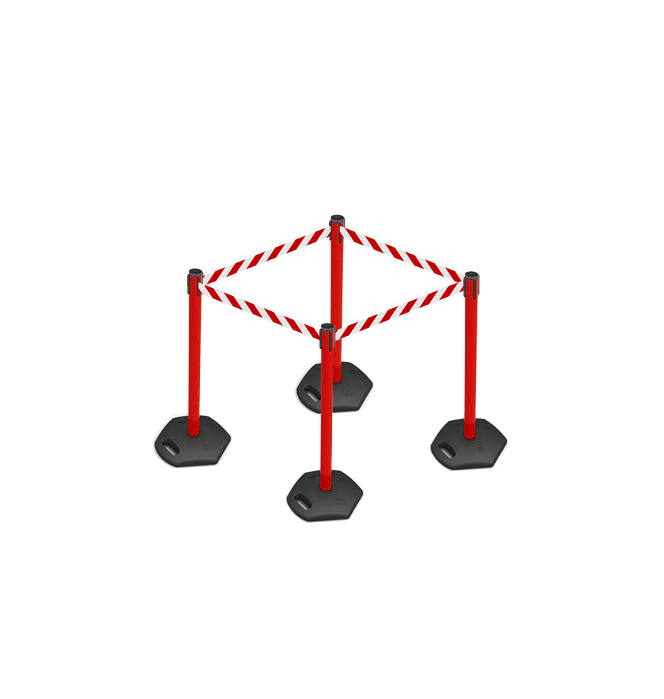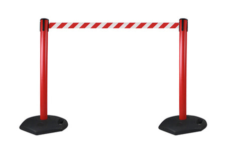 Ein einfacher Pfosten in klarer gelber Ausführung mit schwarz/gelbem Band und roter Ausführung mit rot/weißem Band, das bis zu 3 Meter ausgezogen werden kann. Hervorragende Stabilität dank der stabilen Basis, die über einen integrierten Griff verfügt, sodass Sie Ihre Pfosten leicht bewegen können. Die Montage der Pfosten dauert nicht länger als 2-3 Minuten, einfach den Pfosten auf die Basis schrauben und Sie sind startklar.