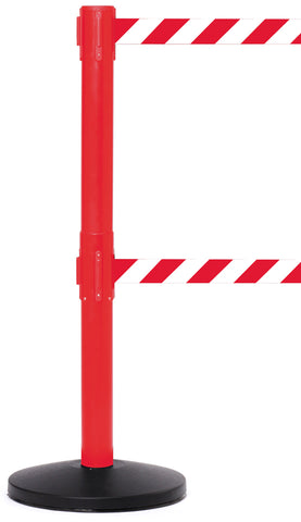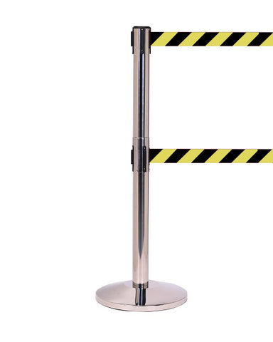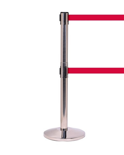 Eine erschwingliche Doppelgurt-Retraktierbarriere, die mit einer 3-jährigen Herstellergarantie abgesichert ist. Vollgepackt mit Funktionen zu diesem Preis und sie verfügt sogar über eine gebremste Sicherheitsfunktion, die es ermöglicht, das Band langsam in den Sockel zurückzuziehen.