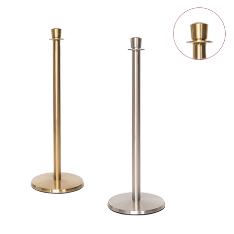 Der Premium Crown Top ist der am häufigsten verwendete, aber klassische Seilpfosten, der bei den meisten roten Teppichveranstaltungen weltweit zu finden ist. Diese Modelle glänzen im Rampenlicht aufgrund ihrer robusten Stahlkonstruktion und des Gusseisenfußes. Der ab Werk montierte Rundumschutz am Boden ist so konzipiert, dass er dem Pfosten über viele Jahre hinweg stabilen Halt bietet. Der Bodenschutz ist äußerst effektiv, um den teuren Bodenbelag vor Rostflecken oder den Spuren des gezogenen Pfostens zu schützen.