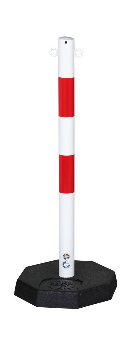 - Gewicht pro Absperrpfosten mit Basis beträgt 9 kg