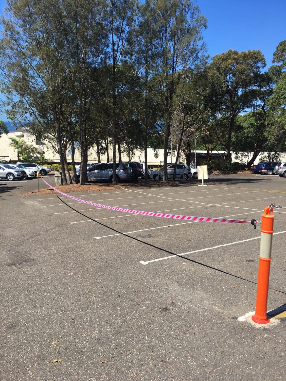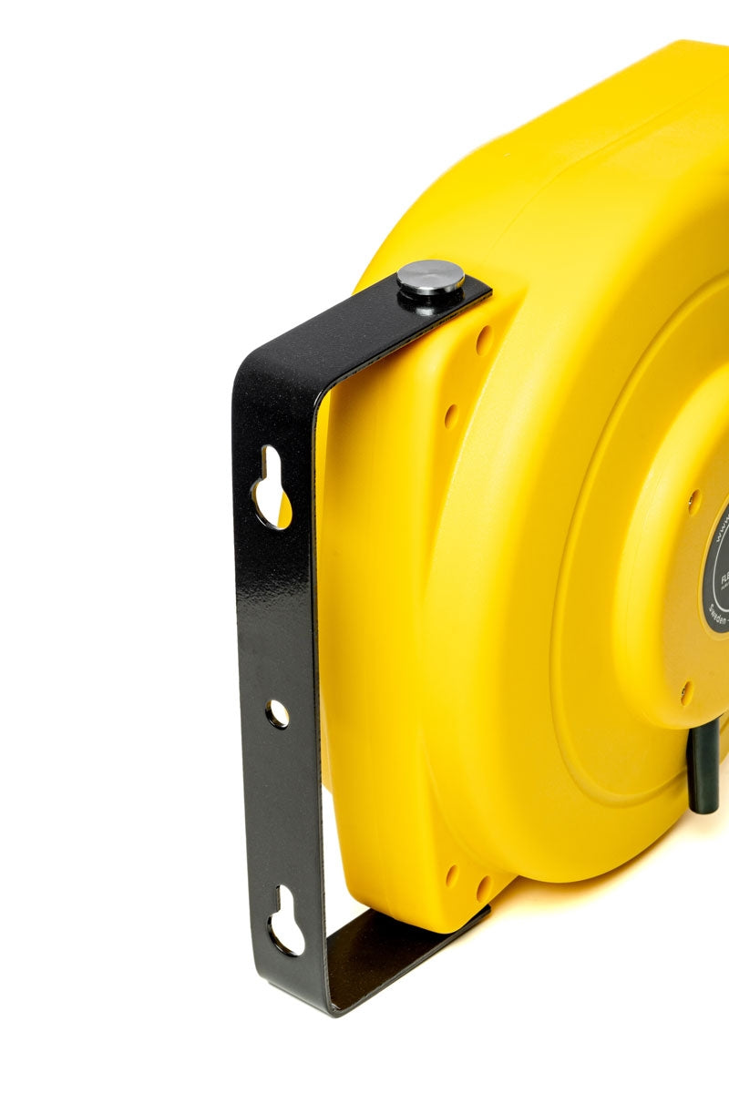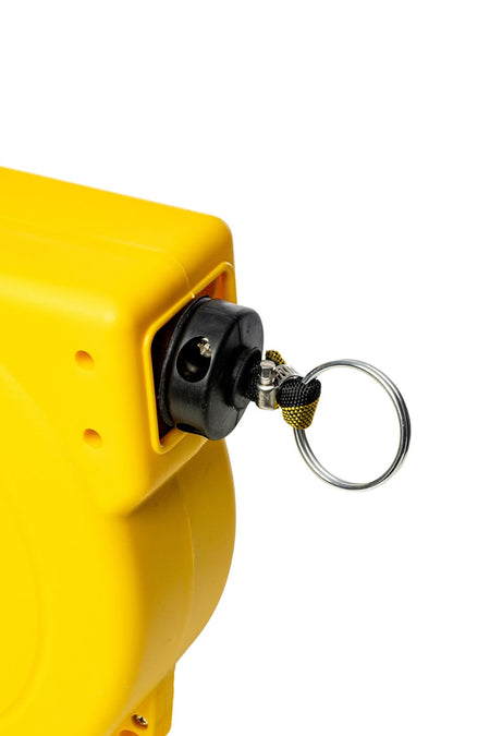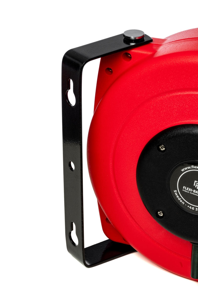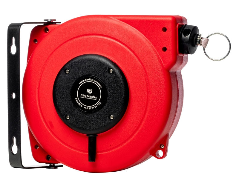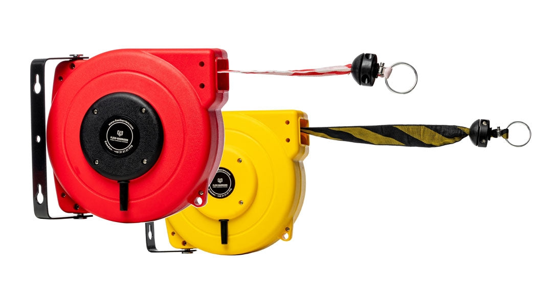 Montieren Sie einfach die Rolle an einer Wand und ziehen Sie das Schwarz-Gelbe oder Rot-Weiße Band - das unter konstanter Spannung steht - zu einer anderen Oberfläche und befestigen Sie es dort mit Hilfe der (mitgelieferten) Wandaufnahme.
