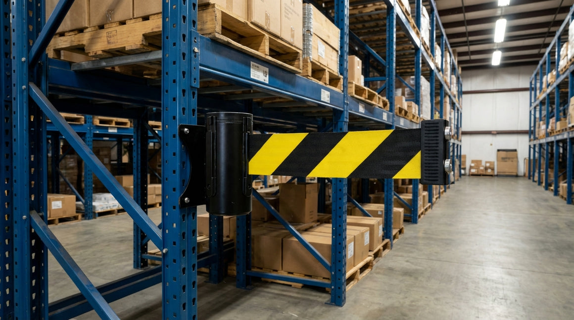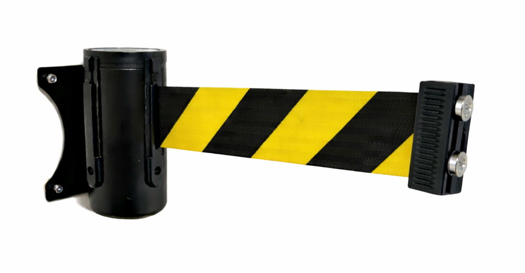 Startseite » Absperrband » FlexiBarrier Wandmontierte Absperrung – Economy – Magnetisch (2,3–4,5 m Gurt)