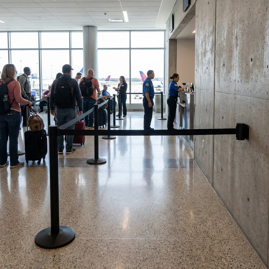 FlexiBarrier Wandmontierte Absperrung - Economy - (2,3 - 4,5 m Gurt)