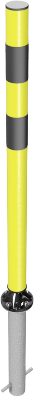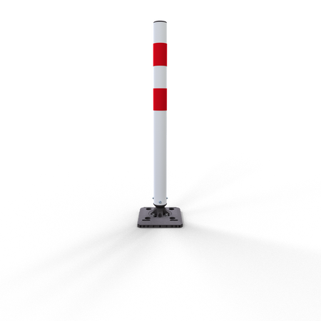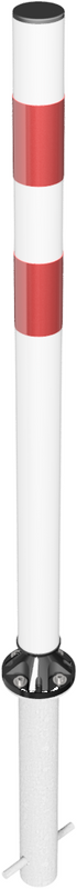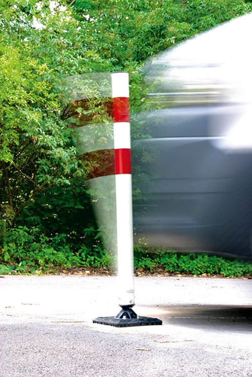 An der 900 mm hohen Barriere in Weiß wurden zwei rote Reflektorstreifen in idealem Abstand vom Boden angebracht, um maximale Sichtbarkeit zu gewährleisten. Der Durchmesser des Pfostens beträgt 60 mm. Trotz seiner extrem langlebigen Leistung sollte der Pfosten nicht mehr als sporadisch überfahren werden.