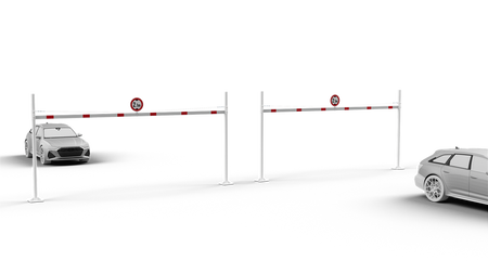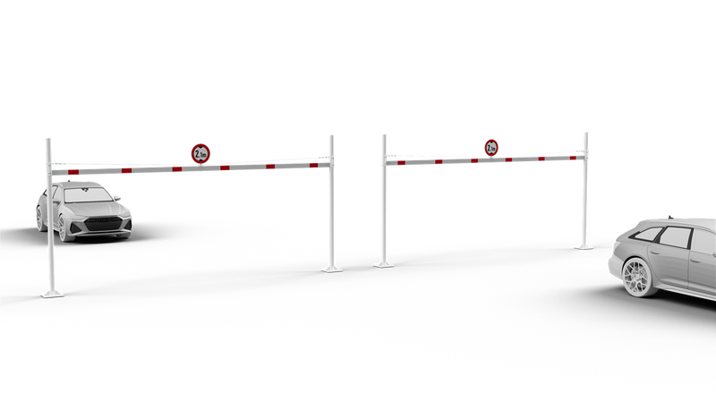 Höhenbegrenzungsbarriere mit 2 quadratischen Pfosten (3-9m Breite)