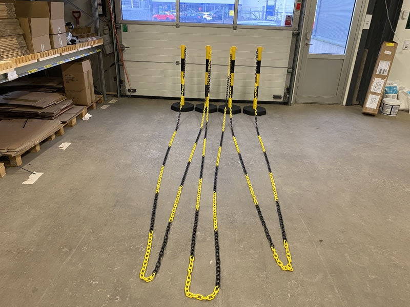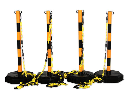 Kettenpfosten Paket -Robust-, 4 Kunststoffpfosten inkl. 25m Kette (Gelb/Schwarz)