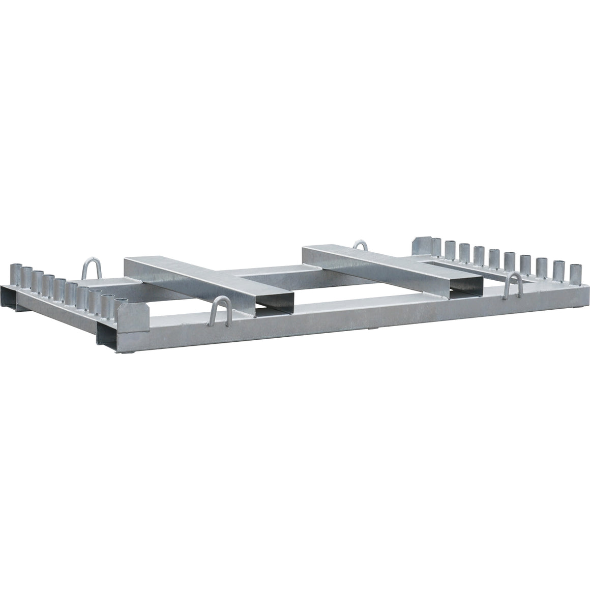 Diese robuste Lager- und Transportpalette ist für die einfache Handhabung und den sicheren Transport von bis zu 20 Zaun- oder Mobilzaunelementen konzipiert. Aus verzinktem Stahl gefertigt, gewährleistet sie eine langanhaltende Haltbarkeit und Schutz vor Korrosion.