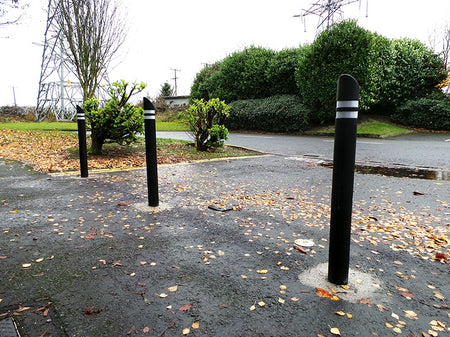 Der vielseitige Stadtpoller ist so konzipiert, dass er eine Vielzahl von Anwendungen erfüllt. Dieser schwarze Stadtpoller ist dafür ausgelegt, den Zugang zu kleinen städtischen Architekturen zu blockieren, einzelne Bereiche abzugrenzen sowie Parkplätze oder Garagen zu sichern. Bei einem Aufprall durch ein Fahrzeug biegt sich der Poller, ohne das Fahrzeug oder den Poller selbst zu beschädigen, was ihn zu einer sichereren Alternative zu fest im Boden verankerten Metallpollern macht. Neben geringen Wartungskosten bietet er auch eine beeindruckende Ästhetik für die Umgebung. Der 140 cm hohe Poller besteht aus vulkanisiertem Gummi mit 3M-Reflexionsband am oberen Ende. Dieser 10 cm Durchmesser Stadtpoller ist in (3) Stilen erhältlich—Klassisch, Retro und Modern. Für die Montage wird der Stadtpoller in einer Tiefe von 500 mm im Boden einbetoniert oder mit Quarzsand in einem Kunststoffrohr stabilisiert.