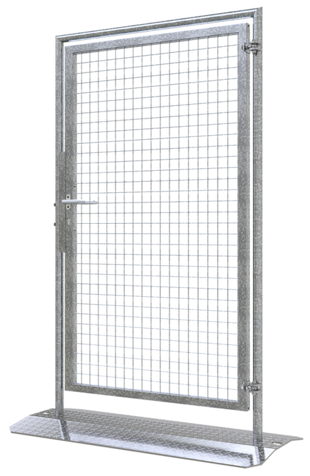 Die Tür ist aus einer robusten Stahlrahmenkonstruktion geschweißt, um Langlebigkeit, Stabilität und sicheren täglichen Gebrauch zu gewährleisten. Griffe sind sowohl innen als auch außen angebracht, um eine bequeme Bedienung zu ermöglichen.