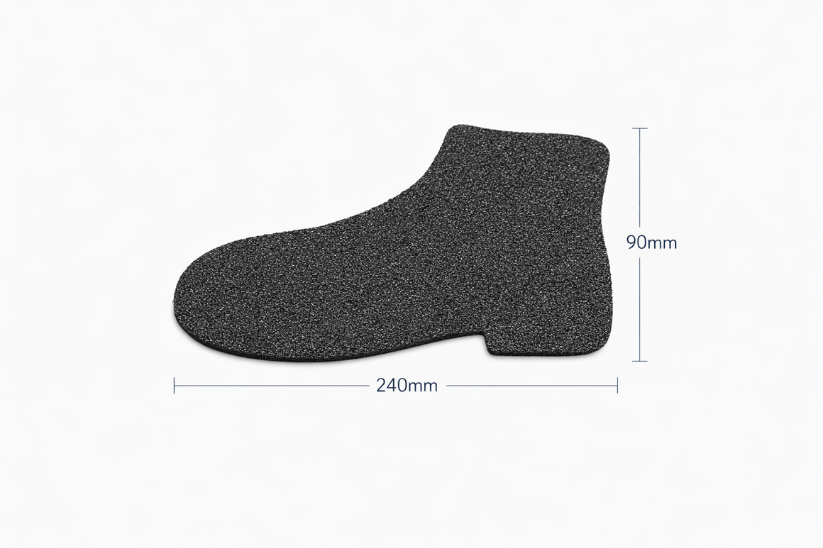 Safety-Grip® Grobe Antirutschbeschichtung – Vorgestanzte Formen ist ein zuschnittfertiges Antirutschsortiment für die schnelle Installation auf Stufen, Gehwegen, Rampen und Arbeitsbereichen.