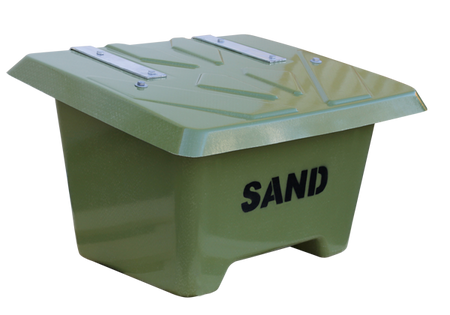 Unser kleinster Streugutbehälter mit einem Fassungsvermögen von 65 Litern zur Lagerung von Streusalz oder Streugut. Der Behälter ist stapelbar und mit 10 cm hohen Beinen ausgestattet, was das Bewegen mit einem Gabelstapler erleichtert.