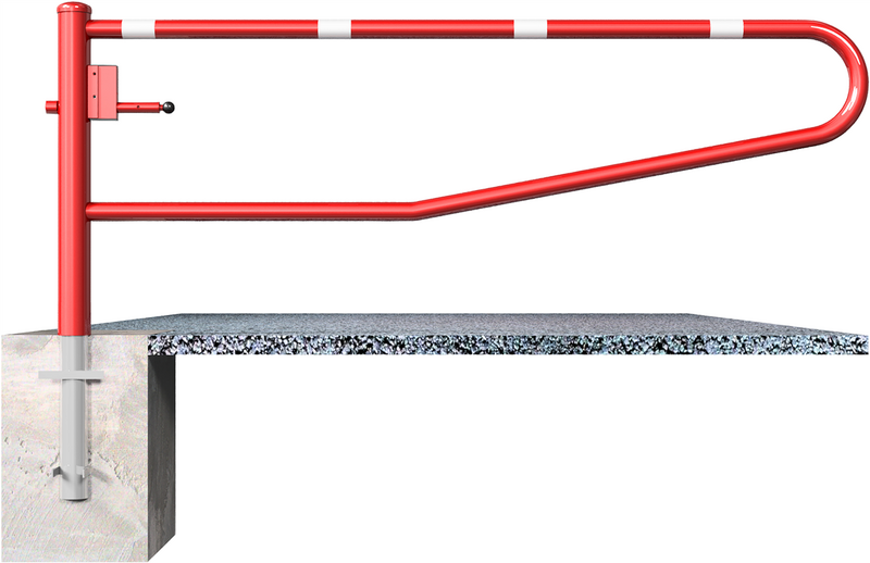 Mit Einbetonieranker befestigt - Feuerverzinkt und weiß beschichtet mit roten reflektierenden Streifen / für Vorhangschloss / 3000 mm