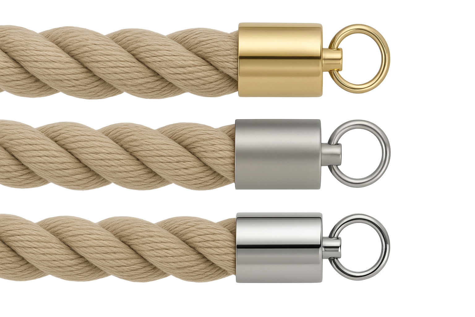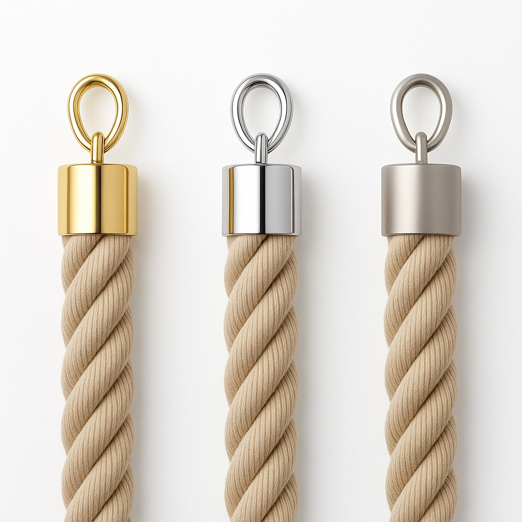 Premium Treppenseilhandlauf in 35 mm Polyhanf. Auf Ihre Wunschlänge zugeschnitten und mit Endkappen und Wandhalterungen in der von Ihnen gewählten Ausführung kombiniert. Perfekt für Wohnungen, Restaurants, Geschäfte, Hotels und öffentliche Innenräume.