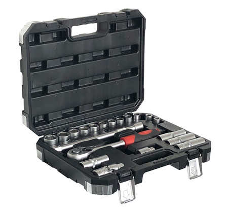 - 12x Sechskant-Steckschlüssel: SW 10, 11, 12, 13, 14, 15, 16, 17, 18, 19, 22, 24